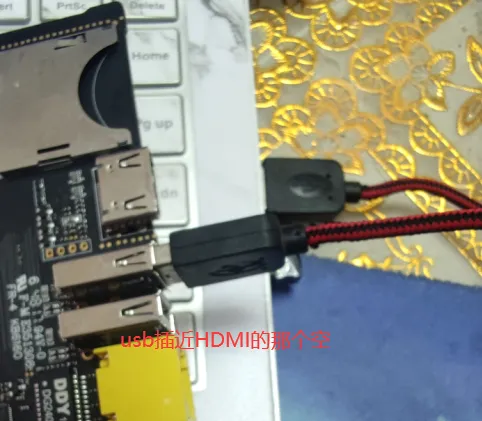 拆开玩客云,取出主板,USB公对公插入接近HDMI口的那一个,另一端插电脑前面后面任意